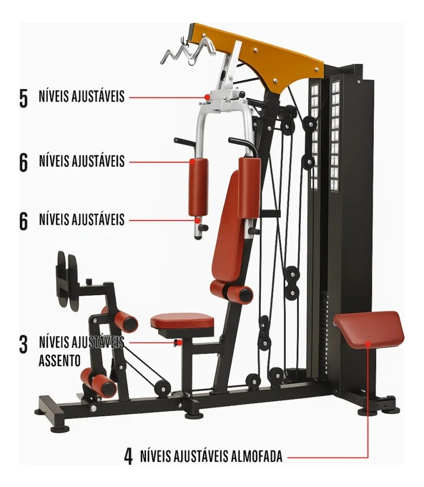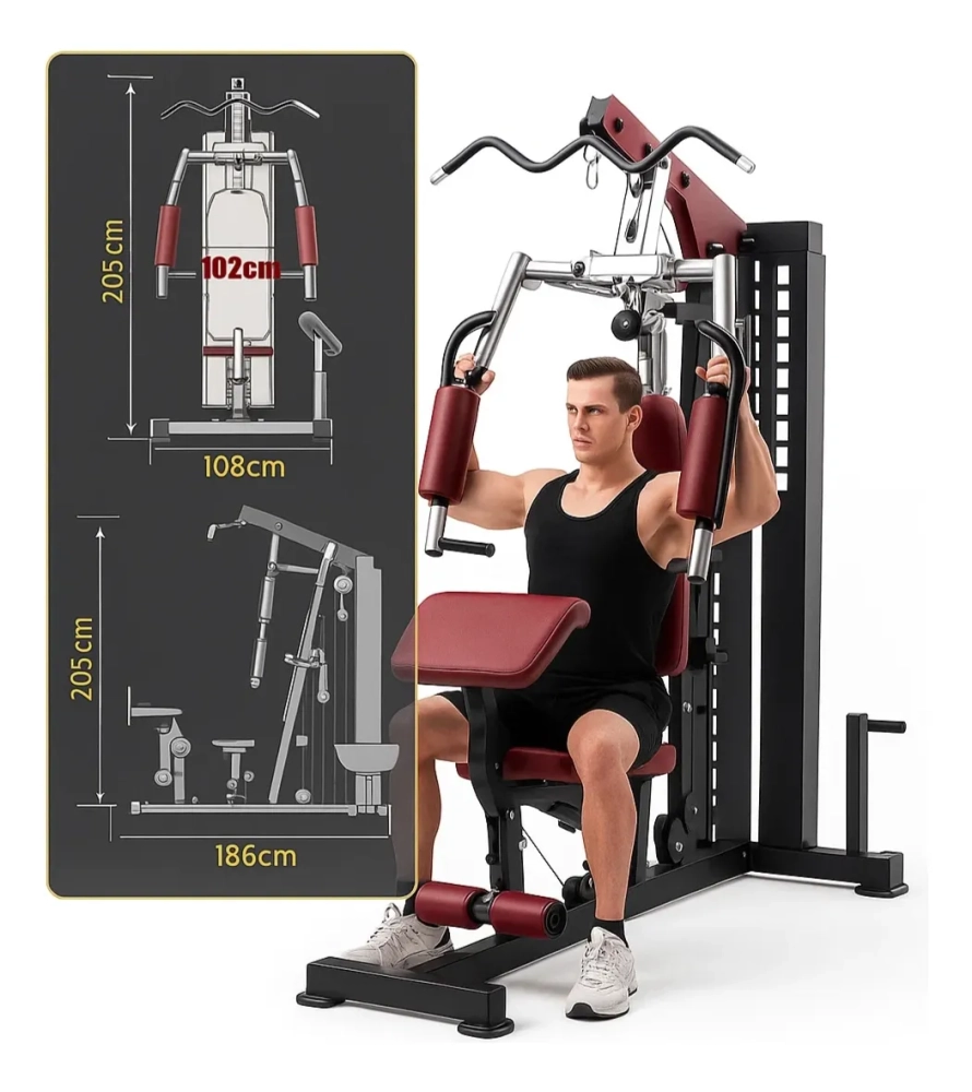 Monte sua academia em casa com a Estação de Musculação Compacta. Treinos completos para todos os músculos com conforto e eficiência. Estrutura robusta, design compacto e resultados garantidos.