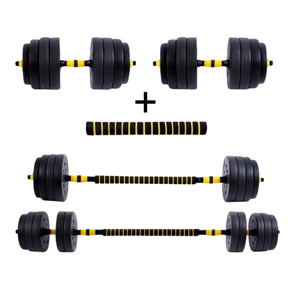 Tipo: Kit Halteres 3 em 1 com barras e anilhas ajustáveis