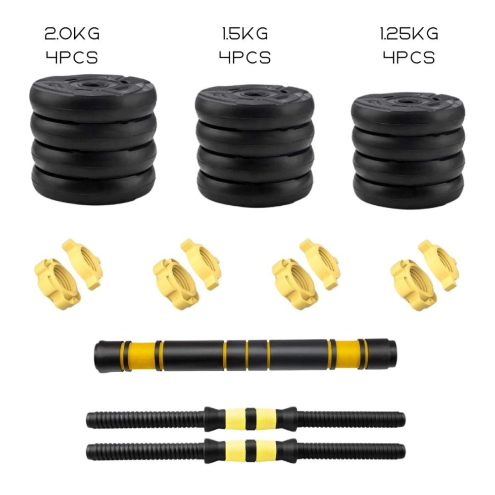 Kit Halteres 3 Em 1 Ajustável Até 20kg Preto e Amarelo Musculação Treino em Casa