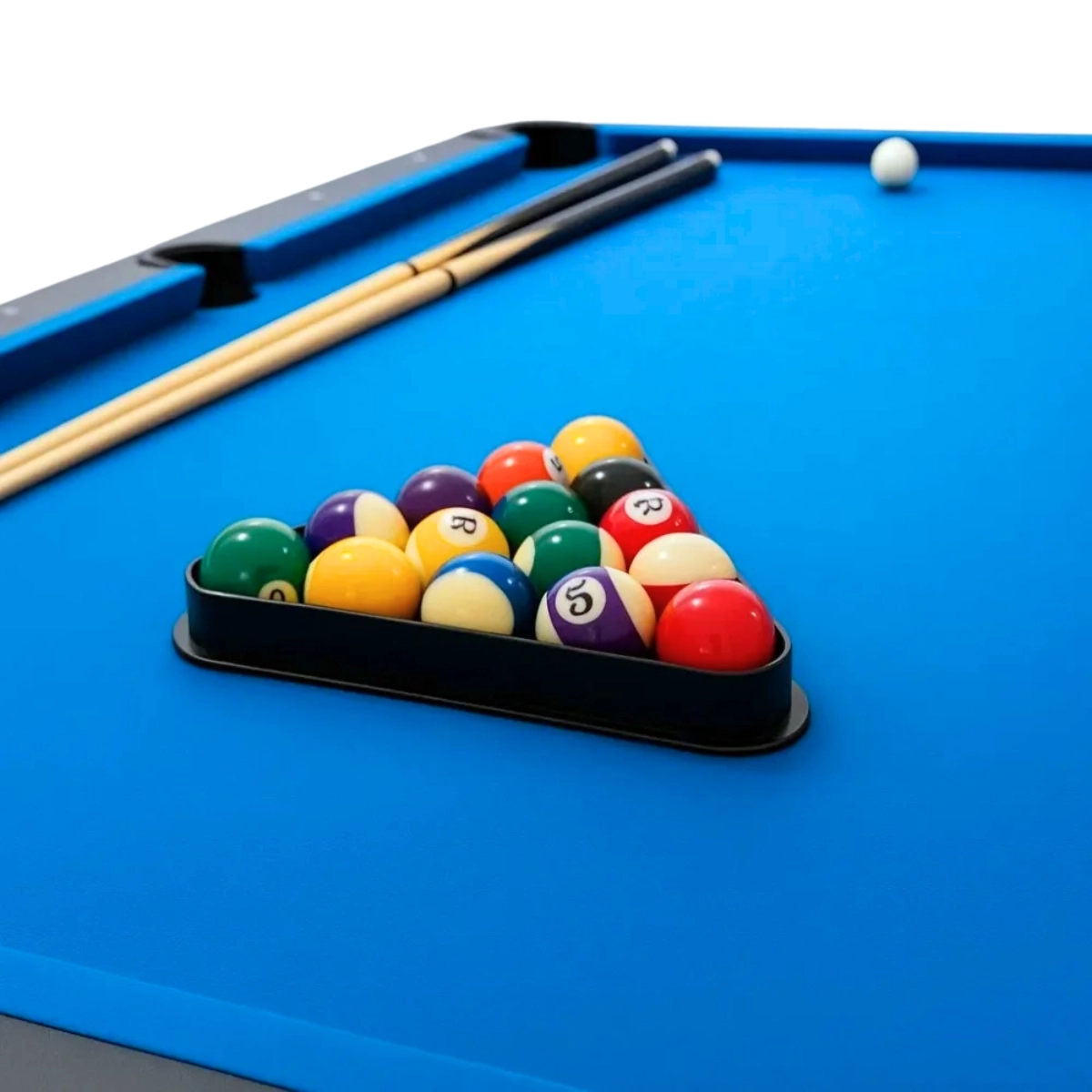 Perfeita para residências, áreas de lazer e estabelecimentos, a mesa já vem completa com todos os acessórios necessários para começar a jogar imediatamente: 2 tacos de 1,45m, giz e jogo de bolas numeradas com bola branca.